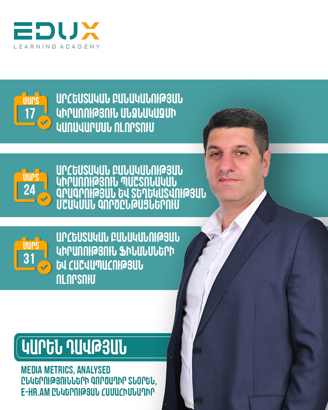 Մեկնարկ՝ Մարտ 31, ապրիլ 2, 7 | ժամը՝ 19։00-21։00
