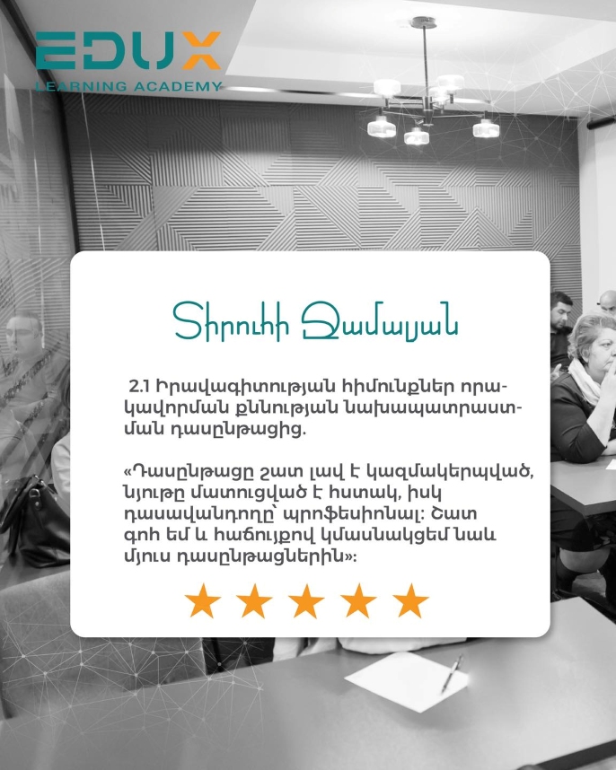 Edux կրթական ակադեմիան շարունակում է նպաստել աշխատաշուկայում տարբերվող ու իրենց հմտություններով առանձնացող մասնագետների կերտմանը։