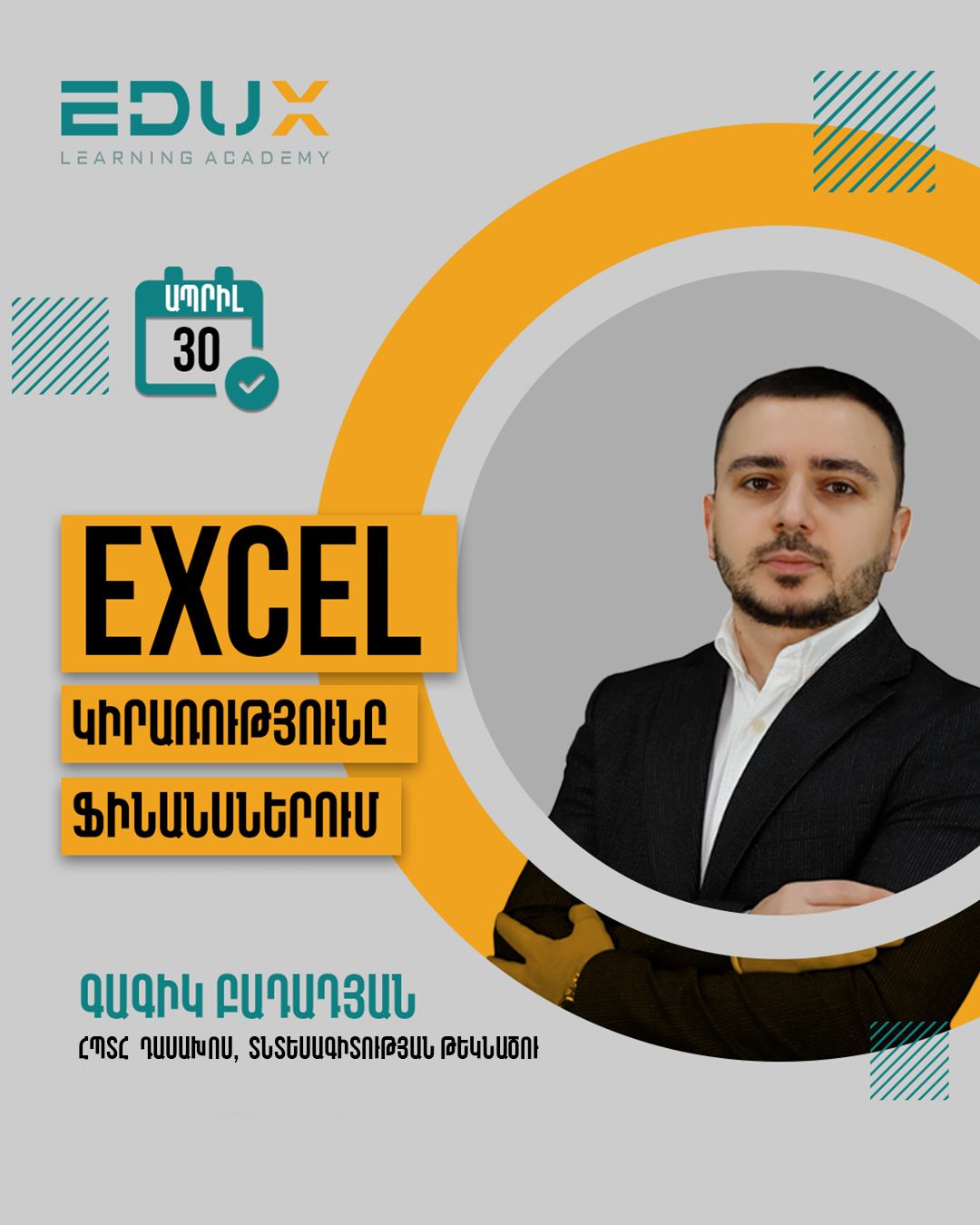 Դասընթացի նպատակն է MS Excel ծրագրի ուսումնասիրությամբ ֆինանսատնտեսական ոլորտի մասնագետներին փոխանցել գիտելիքներ և հմտություններ, որոնք կնպաստեն MS Excel ծրագրի կիրառմամբ տվյալների արդյունավետ մշակմանը, արագ և հեշտ հաշվարկների իրականացմանը և նման աշխատանք կատարող մասնագետների աշխատանքի արդյունավետության բարձրացմանը: